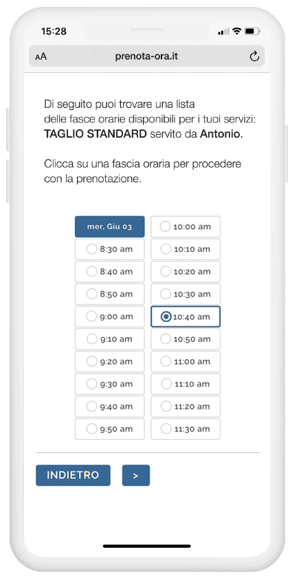 Con un semplice click, i tuoi clienti prenoteranno l’appuntamento sul calendario e sceglieranno tra le date disponibili.